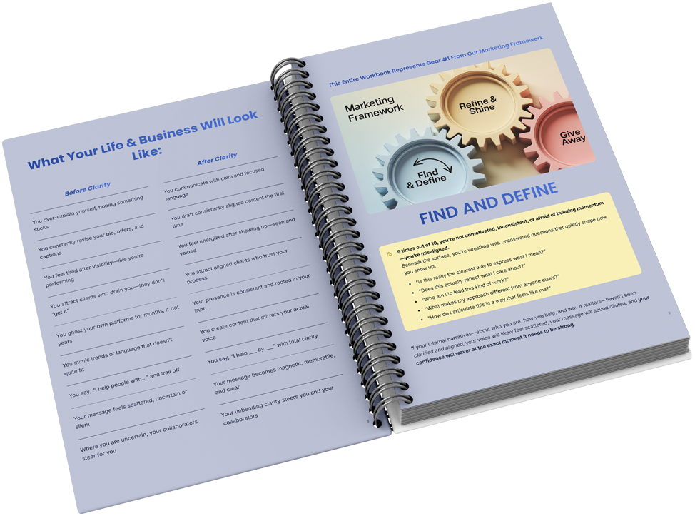 From your first offer to your next evolution, this workbook meets you at your core and brings your voice into clear view.
